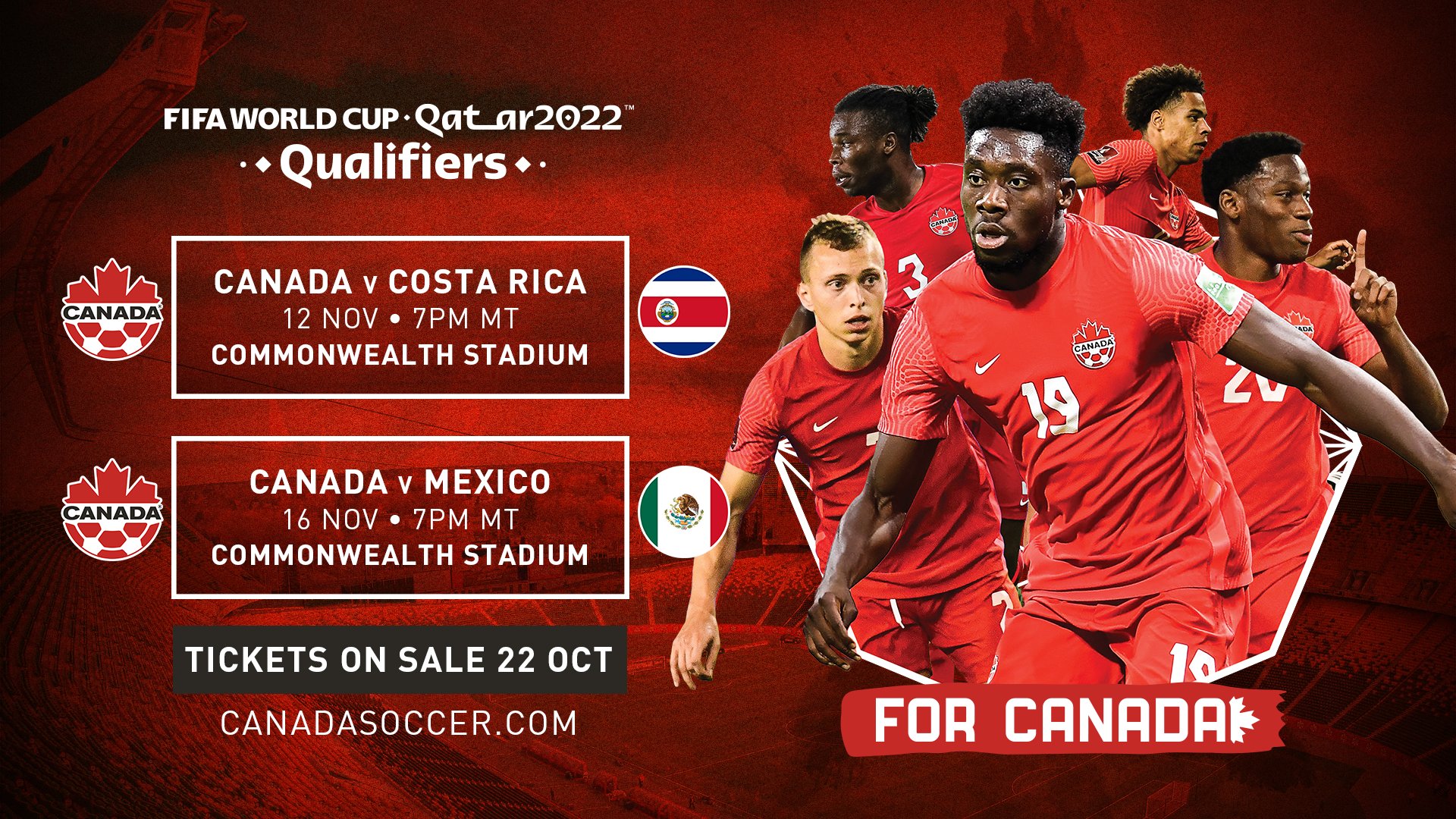 Canada Soccer On Twitter Tickets For Canada S Fifa World Cup Qualifiers Against Costa Rica And Mexico At Commonwealth Stadium In Edmonton To Go On Sale Friday October 22 Help Us Build
